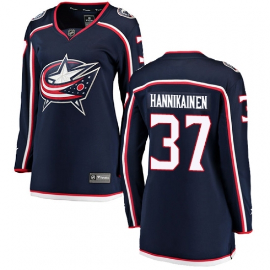 • Women's Columbus Blue Jackets #37 Markus Hannikainen Fanatics Branded Navy Blue Home Breakaway NHL Jersey