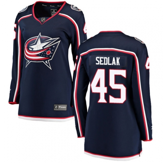 • Women's Columbus Blue Jackets #45 Lukas Sedlak Fanatics Branded Navy Blue Home Breakaway NHL Jersey