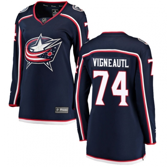 • Women's Columbus Blue Jackets #74 Sam Vigneault Authentic Navy Blue Home Fanatics Branded Breakaway NHL Jersey