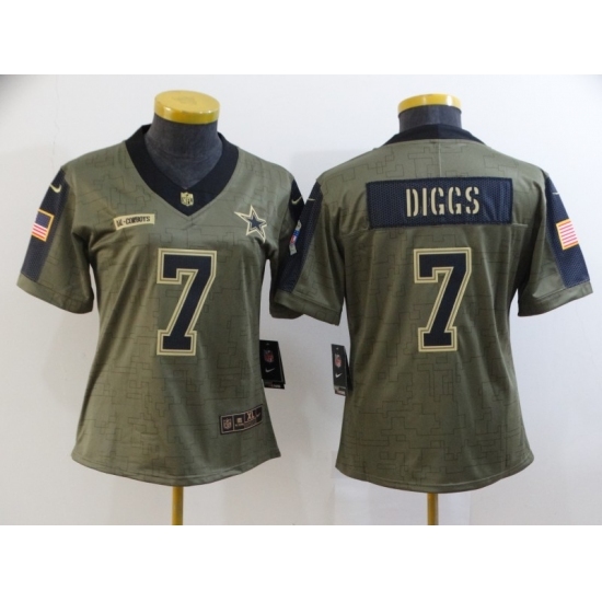 • Women's Dallas Cowboys #7 Trevon Diggs Nike Olive 2021 Salute To Service Limited Player Jersey