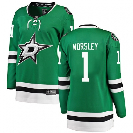 • Women's Dallas Stars #1 Gump Worsley Authentic Green Home Fanatics Branded Breakaway NHL Jersey