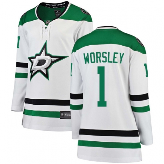 Women's Dallas Stars #1 Gump Worsley Authentic White Away Fanatics Branded Breakaway NHL Jersey