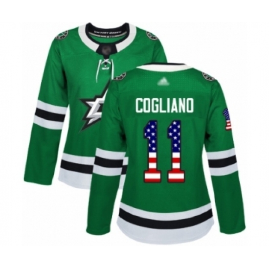• Women's Dallas Stars #11 Andrew Cogliano Authentic Green USA Flag Fashion Hockey Jersey