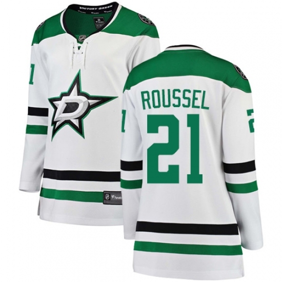 • Women's Dallas Stars #21 Antoine Roussel Authentic White Away Fanatics Branded Breakaway NHL Jersey
