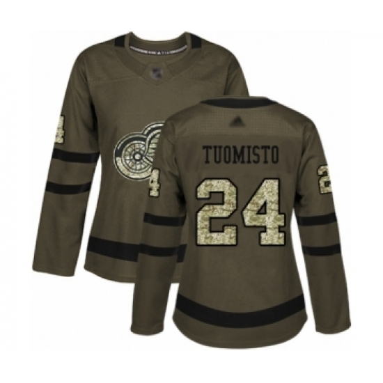 • Women's Detroit Red Wings #24 Antti Tuomisto Authentic Green Salute to Service Hockey Jersey