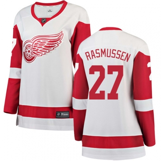 • Women's Detroit Red Wings #27 Michael Rasmussen Authentic White Away Fanatics Branded Breakaway NHL Jersey
