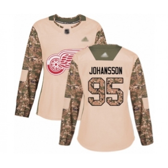 • Women's Detroit Red Wings #95 Albert Johansson Authentic Camo Veterans Day Practice Hockey Jersey