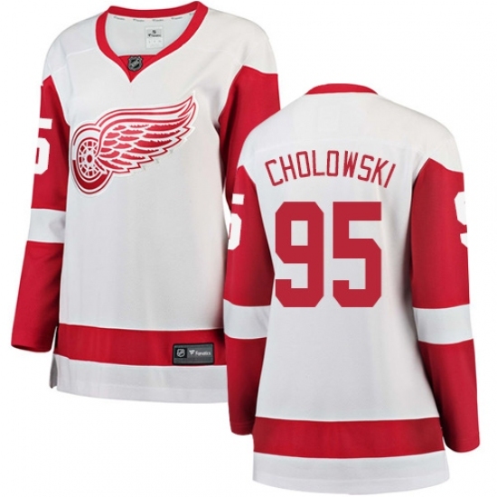 • Women's Detroit Red Wings #95 Dennis Cholowski Authentic White Away Fanatics Branded Breakaway NHL Jersey
