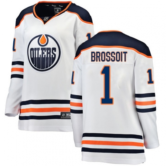 • Women's Edmonton Oilers #1 Laurent Brossoit Authentic White Away Fanatics Branded Breakaway NHL Jersey