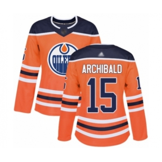 • Women's Edmonton Oilers #15 Josh Archibald Authentic Orange Home Hockey Jersey