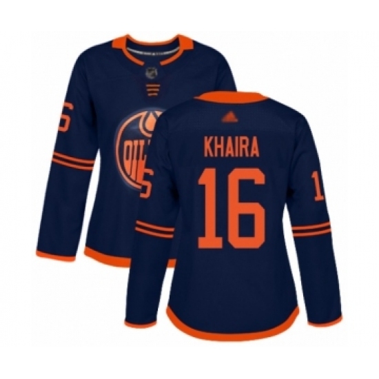 Women's Edmonton Oilers #16 Jujhar Khaira Authentic Navy Blue Alternate Hockey Jersey