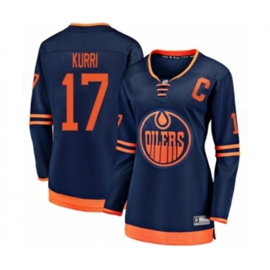 • Women's Edmonton Oilers #17 Jari Kurri Authentic Navy Blue Alternate Fanatics Branded Breakaway Hockey Jersey