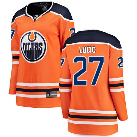 • Women's Edmonton Oilers #27 Milan Lucic Fanatics Branded Orange Home Breakaway NHL Jersey
