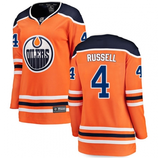 • Women's Edmonton Oilers #4 Kris Russell Authentic Orange Home Fanatics Branded Breakaway NHL Jersey