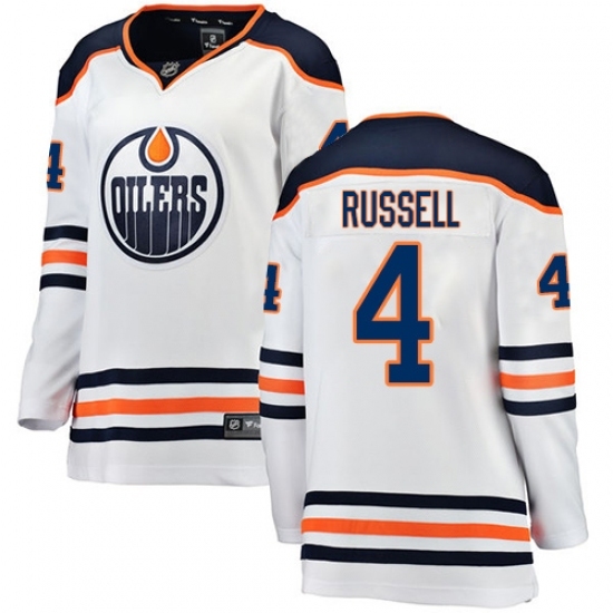 Women's Edmonton Oilers #4 Kris Russell Authentic White Away Fanatics Branded Breakaway NHL Jersey