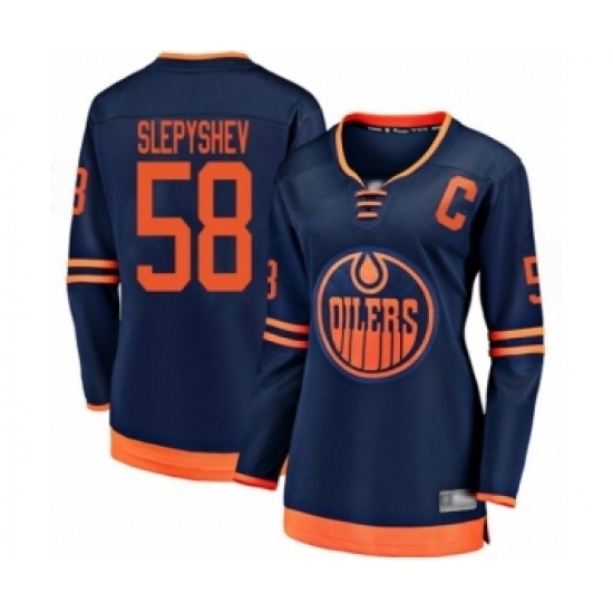 • Women's Edmonton Oilers #58 Anton Slepyshev Authentic Navy Blue Alternate Fanatics Branded Breakaway Hockey Jersey