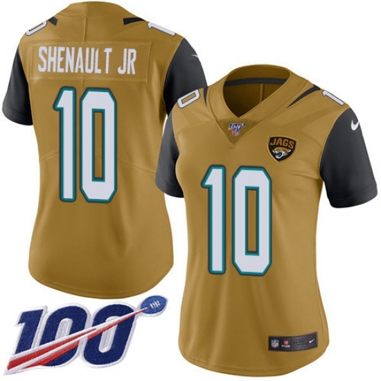 Women's Jacksonville Jaguars #10 Laviska Shenault Jr. Gold Stitched Limited Rush 100th Season Jersey