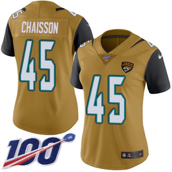 Women's Jacksonville Jaguars #45 K'Lavon Chaisson Gold Stitched NFL Limited Rush 100th Season Jersey