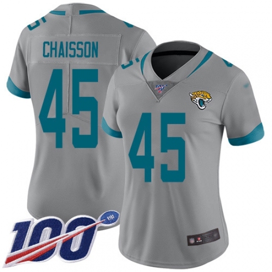 Women's Jacksonville Jaguars #45 K'Lavon Chaisson Silver Stitched NFL Limited Inverted Legend 100th Season Jersey