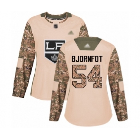 • Women's Los Angeles Kings #54 Tobias Bjornfot Authentic Camo Veterans Day Practice Hockey Jersey