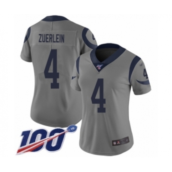 Women's Los Angeles Rams #4 Greg Zuerlein Limited Gray Inverted Legend 100th Season Football Jersey
