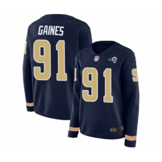 • Women's Los Angeles Rams #91 Greg Gaines Limited Navy Blue Therma Long Sleeve Football Jersey