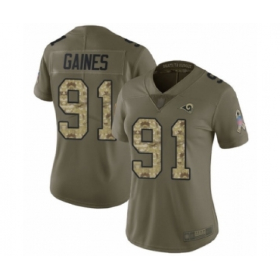 Women's Los Angeles Rams #91 Greg Gaines Limited Olive Camo 2017 Salute to Service Football Jersey