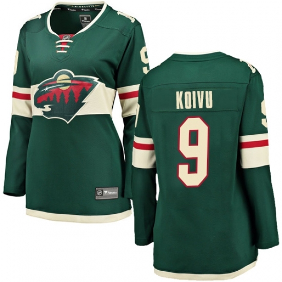 • Women's Minnesota Wild #9 Mikko Koivu Authentic Green Home Fanatics Branded Breakaway NHL Jersey