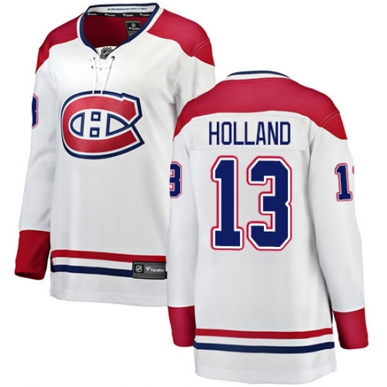 Women's Montreal Canadiens #13 Peter Holland Authentic White Away Fanatics Branded Breakaway NHL Jersey