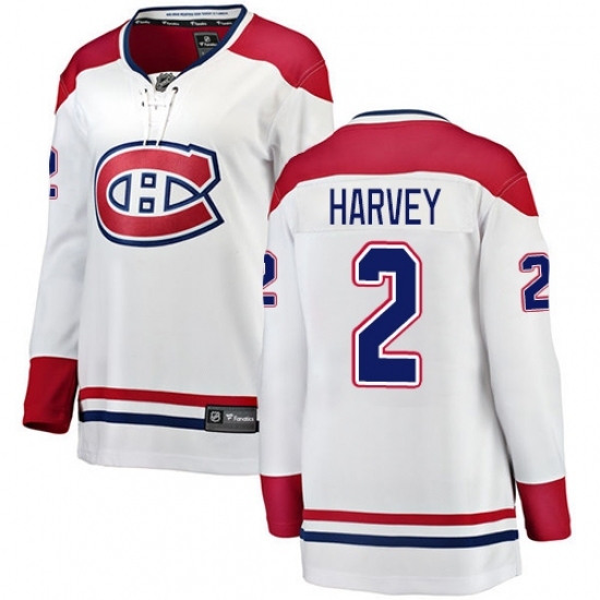 Women's Montreal Canadiens #2 Doug Harvey Authentic White Away Fanatics Branded Breakaway NHL Jersey