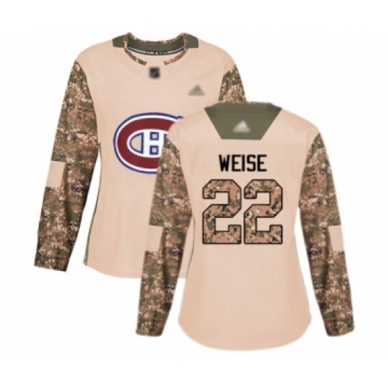 • Women's Montreal Canadiens #22 Dale Weise Authentic Camo Veterans Day Practice Hockey Jersey