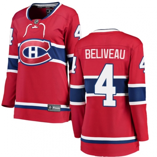 • Women's Montreal Canadiens #4 Jean Beliveau Authentic Red Home Fanatics Branded Breakaway NHL Jersey