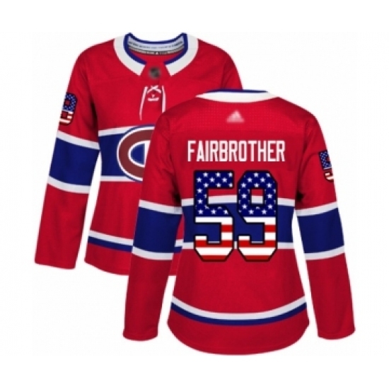 Women's Montreal Canadiens #59 Gianni Fairbrother Authentic Red USA Flag Fashion Hockey Jersey