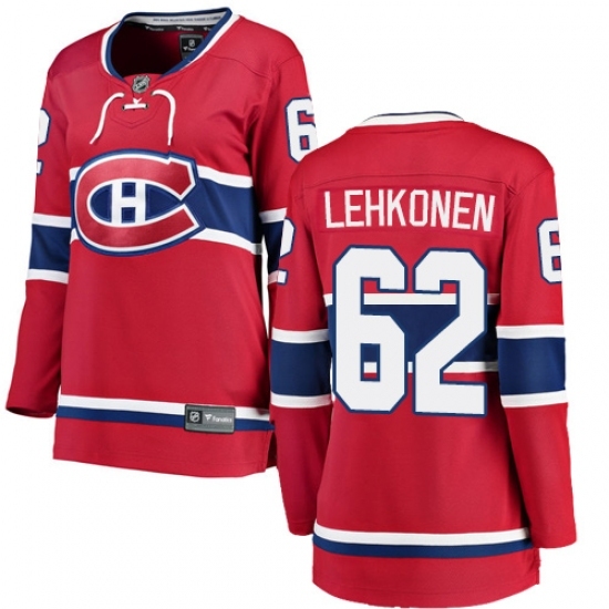 • Women's Montreal Canadiens #62 Artturi Lehkonen Authentic Red Home Fanatics Branded Breakaway NHL Jersey