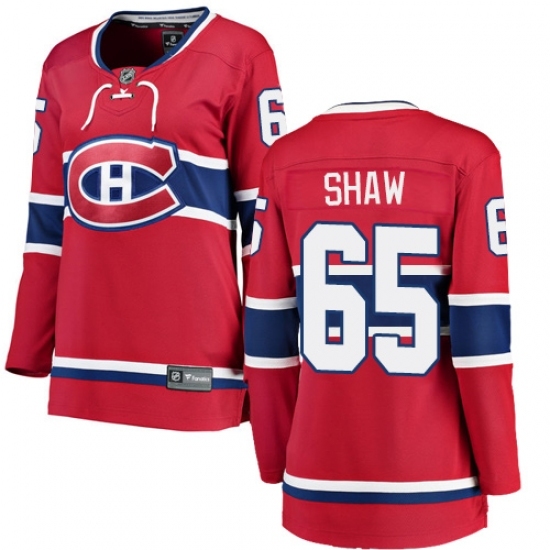 • Women's Montreal Canadiens #65 Andrew Shaw Authentic Red Home Fanatics Branded Breakaway NHL Jersey