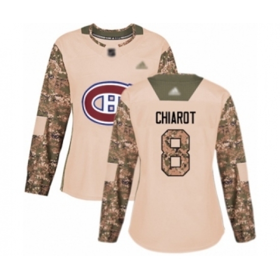 • Women's Montreal Canadiens #8 Ben Chiarot Authentic Camo Veterans Day Practice Hockey Jersey