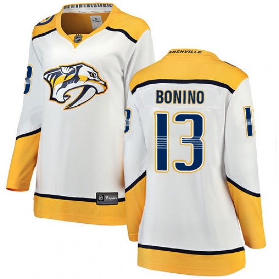 • Women's Nashville Predators #13 Nick Bonino Fanatics Branded White Away Breakaway NHL Jersey