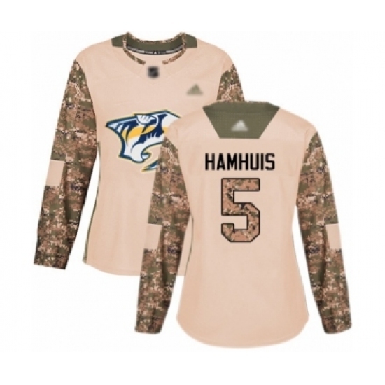 • Women's Nashville Predators #5 Dan Hamhuis Authentic Camo Veterans Day Practice Hockey Jersey