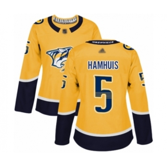 Women's Nashville Predators #5 Dan Hamhuis Authentic Gold Home Hockey Jersey