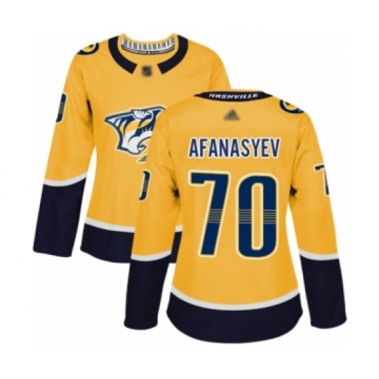 • Women's Nashville Predators #70 Egor Afanasyev Authentic Gold Home Hockey Jersey