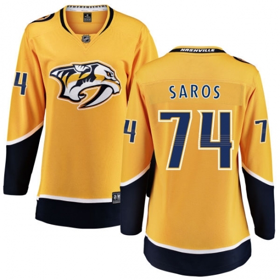 • Women's Nashville Predators #74 Juuse Saros Fanatics Branded Gold Home Breakaway NHL Jersey
