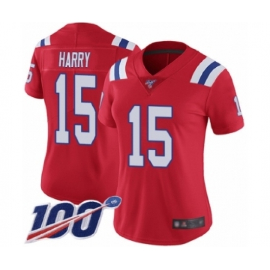 • Women's New England Patriots #15 NKeal Harry Red Alternate Vapor Untouchable Limited Player 100th Season Football Jersey