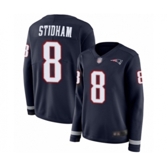Women's New England Patriots #8 Jarrett Stidham Limited Navy Blue Therma Long Sleeve Football Jersey