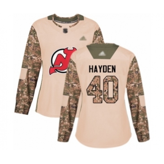 • Women's New Jersey Devils #40 John Hayden Authentic Camo Veterans Day Practice Hockey Jersey