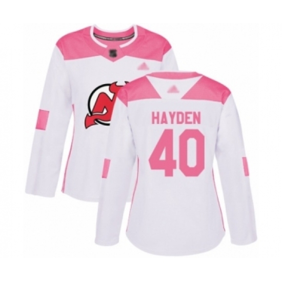 Women's New Jersey Devils #40 John Hayden Authentic White Pink Fashion Hockey Jersey