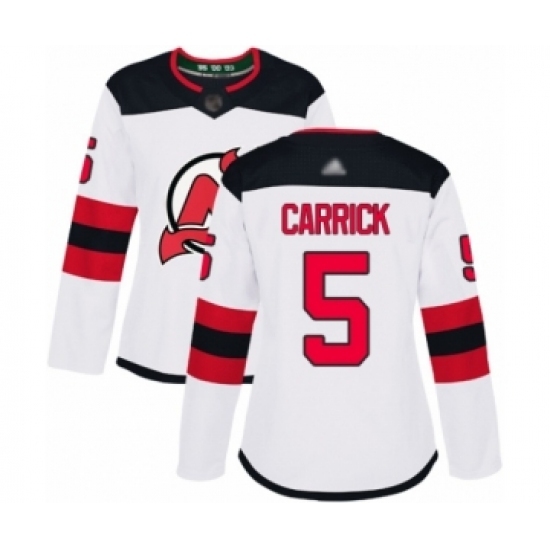 • Women's New Jersey Devils #5 Connor Carrick Authentic White Away Hockey Jersey