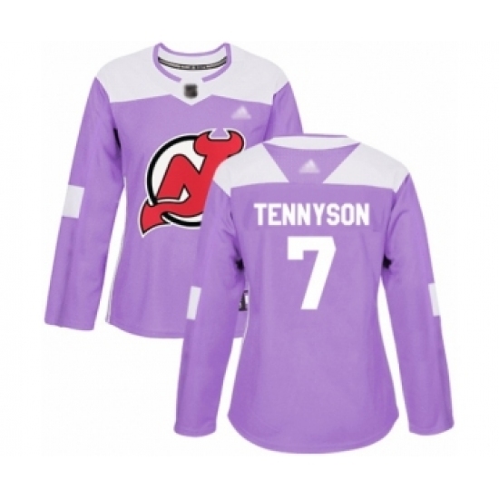 • Women's New Jersey Devils #7 Matt Tennyson Authentic Purple Fights Cancer Practice Hockey Jersey