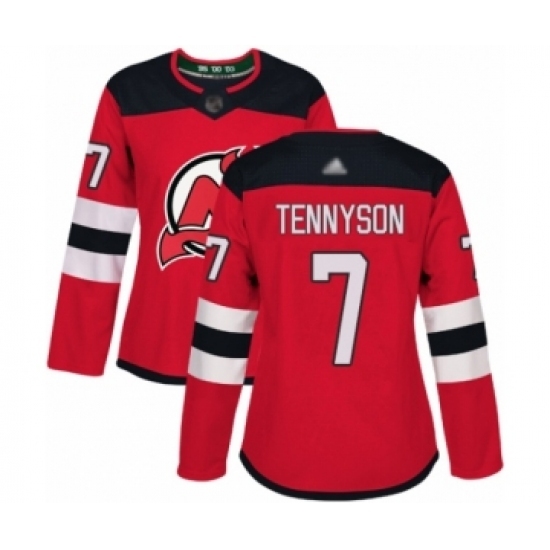 Women's New Jersey Devils #7 Matt Tennyson Authentic Red Home Hockey Jersey