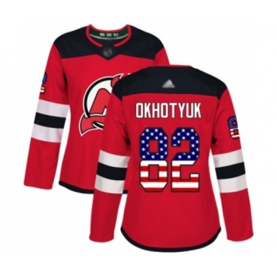 • Women's New Jersey Devils #82 Nikita Okhotyuk Authentic Red USA Flag Fashion Hockey Jersey