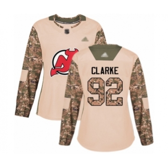 • Women's New Jersey Devils #92 Graeme Clarke Authentic Camo Veterans Day Practice Hockey Jersey